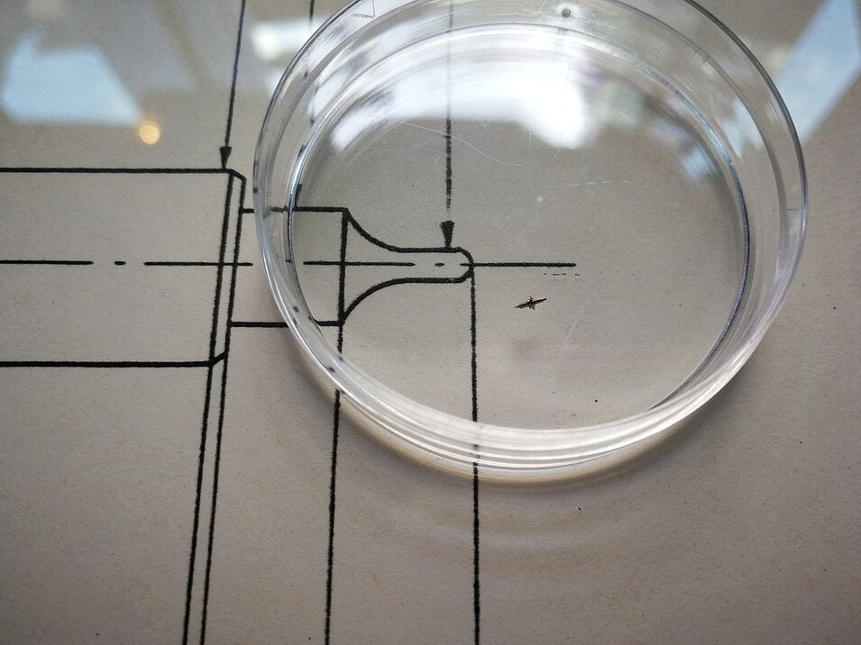Auf dem ersten Bild liegt beispielhaft eine ähnliche Uhnruhwelle in der runden Dose neben der Pinzette, die folgenden Abbildungen zeigen den Bereich vergrößert.