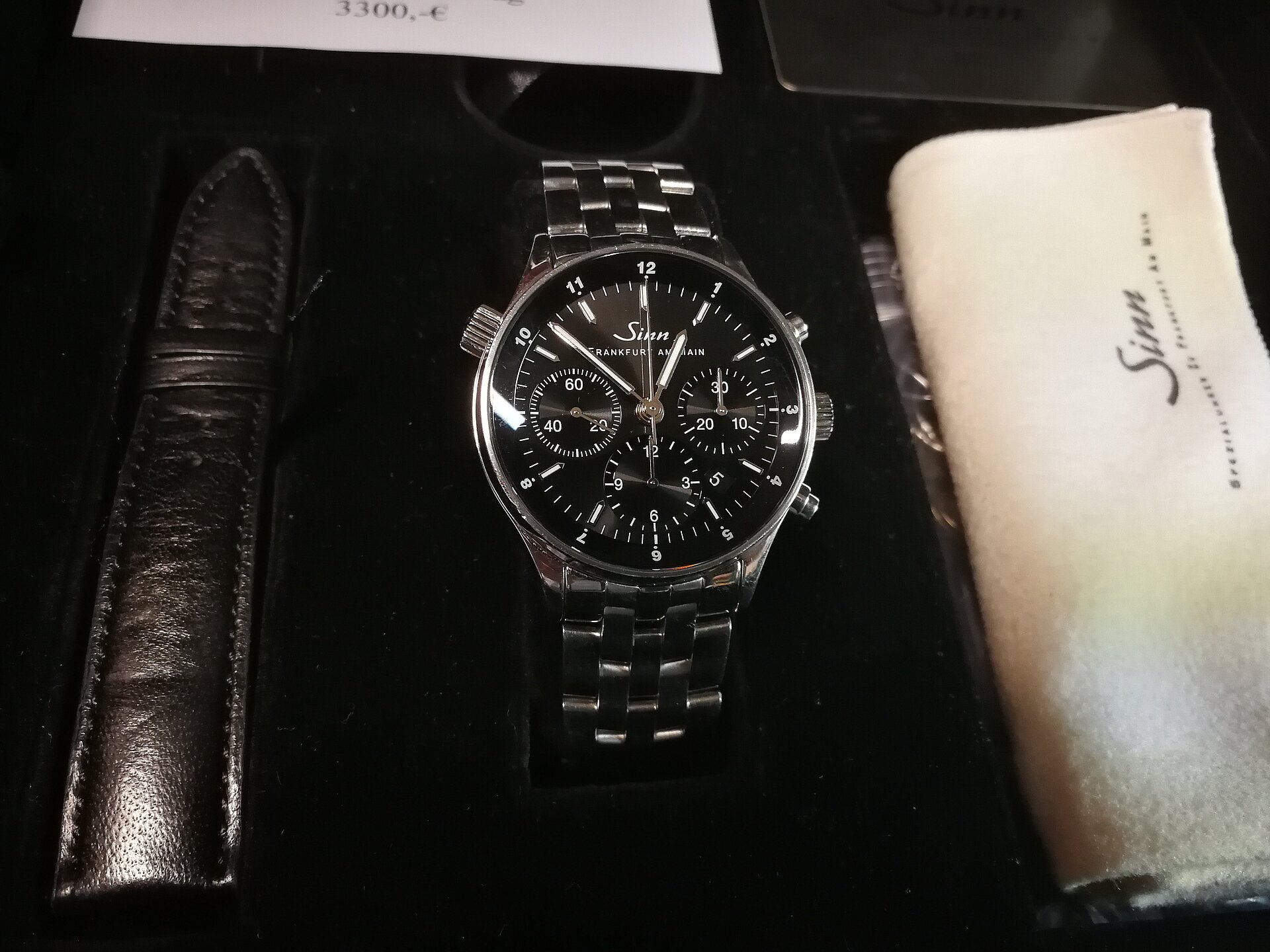 Die Uhr wurde bei uns 2007 gekauft und im Juli 2025 bei Sinn komplett überholt. Papiere, Box und Lederband sind vorhanden. Das Gehäuse zeigt Tragespuren, das Metallband deutliche Tragespuren. Die Sinn-Garantie auf die Überholung beträgt 2 Jahre ab Juli 2025. Neupreis aktuell 4370,-€