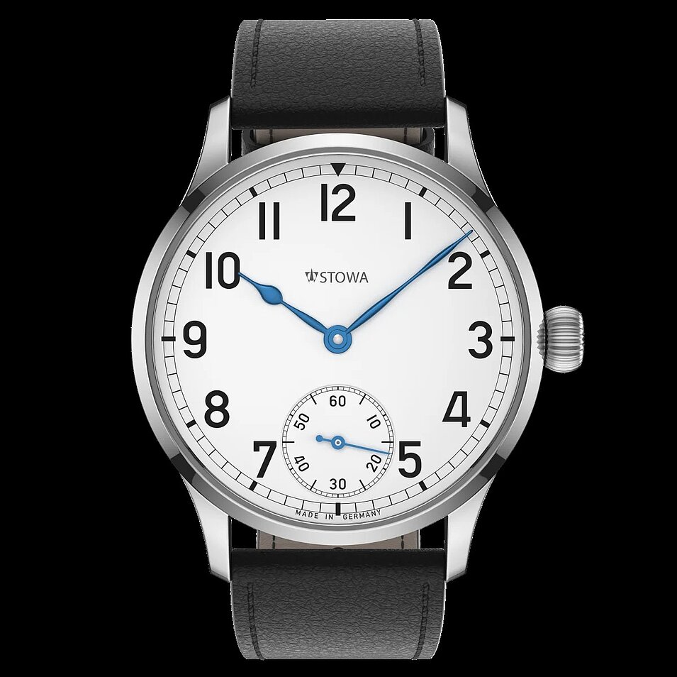 In dieser Linie kommen die früher bei der Marine üblichen weißen Zifferblätter zum Einsatz. Durch die temperaturgebläuten Zeiger sind sie klar ablesbar. Auf Leuchtmasse wird bewusst verzichtet. Stowa verbaut wahlweise eines von vier Grundwerken: