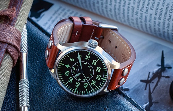 In der Kollektion "Fliegeruhren-Original" finden Sie hochwertige Nachbildungen des Originals. Angeboten werden verschiedene mechanische Werke, Zifferblätter, Durchmesser und in der Kollektion "Erbstück" sogar künstlich gealterte Gehäuse und Zifferblätter.